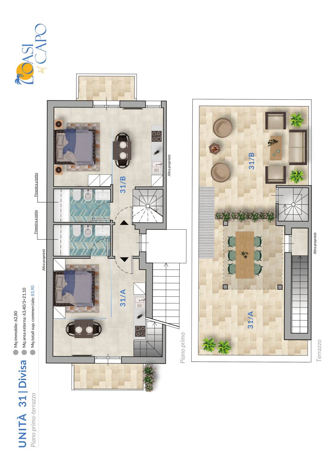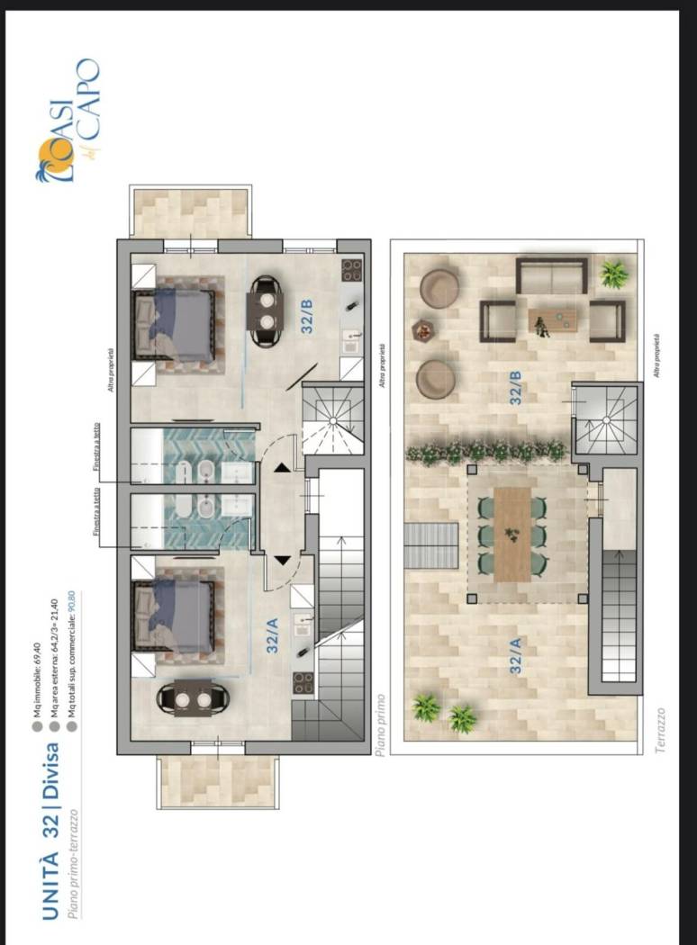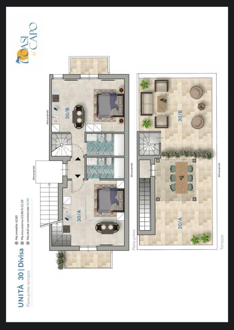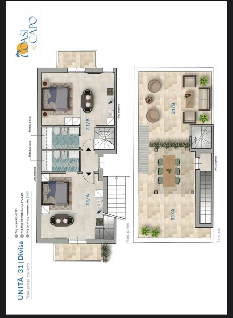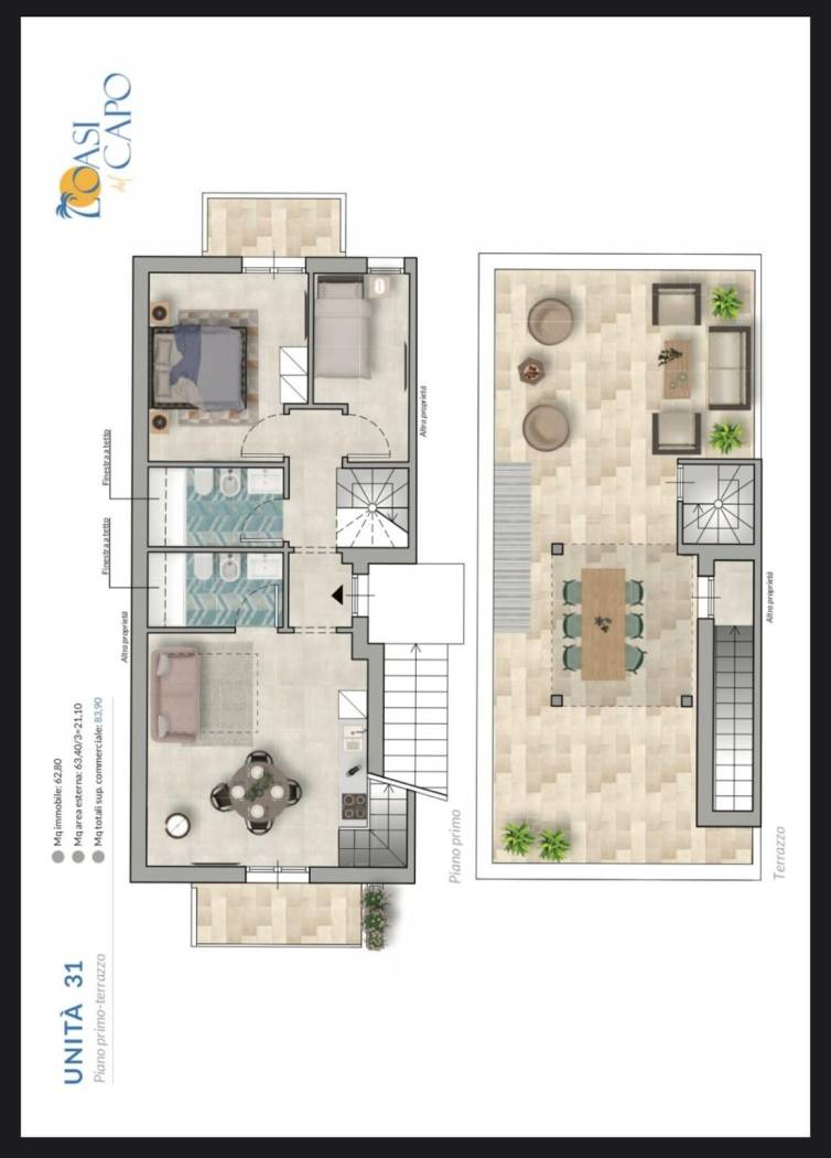 | Terrazza - 2° piano | 70 Mq | 21 Mqc |