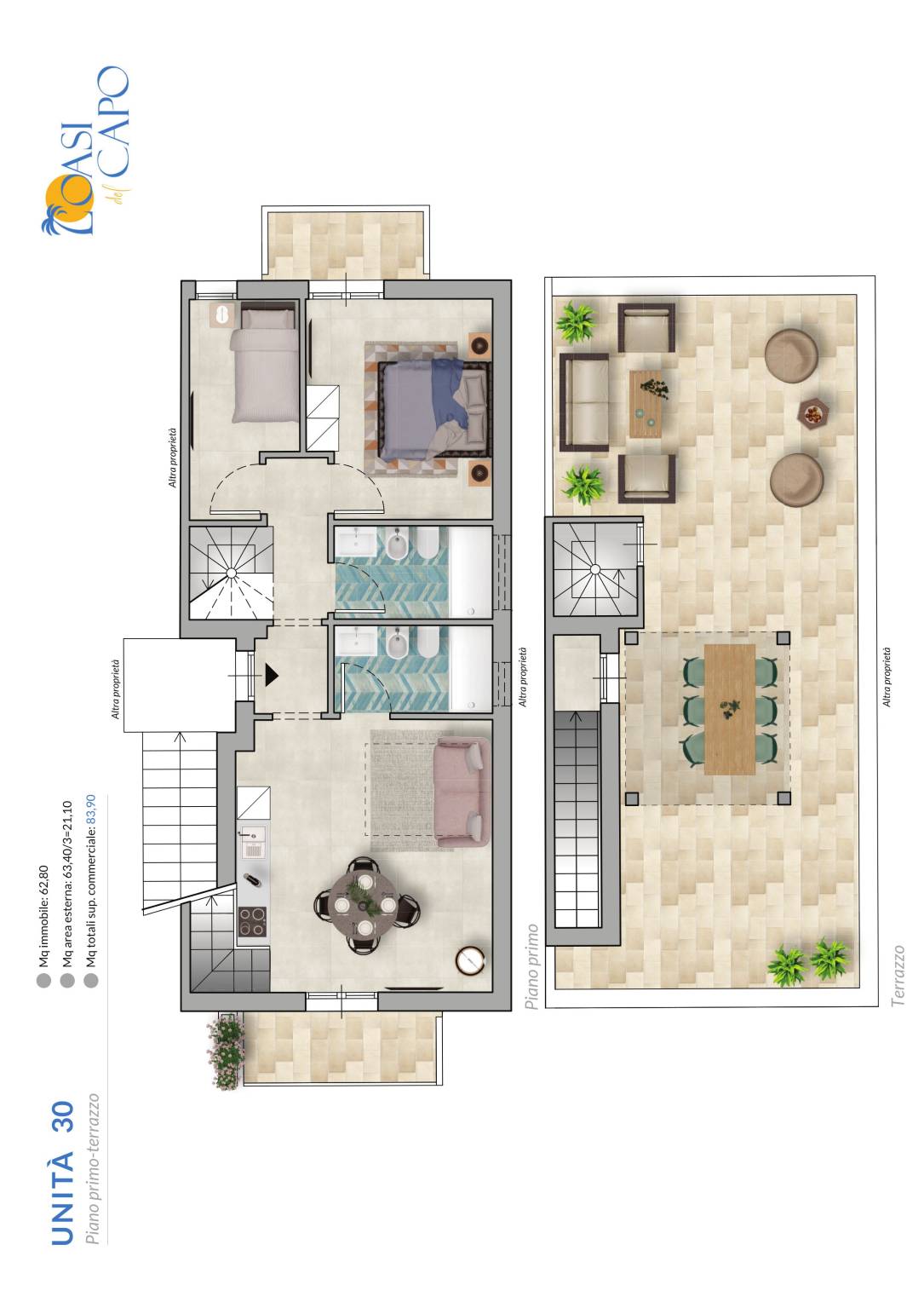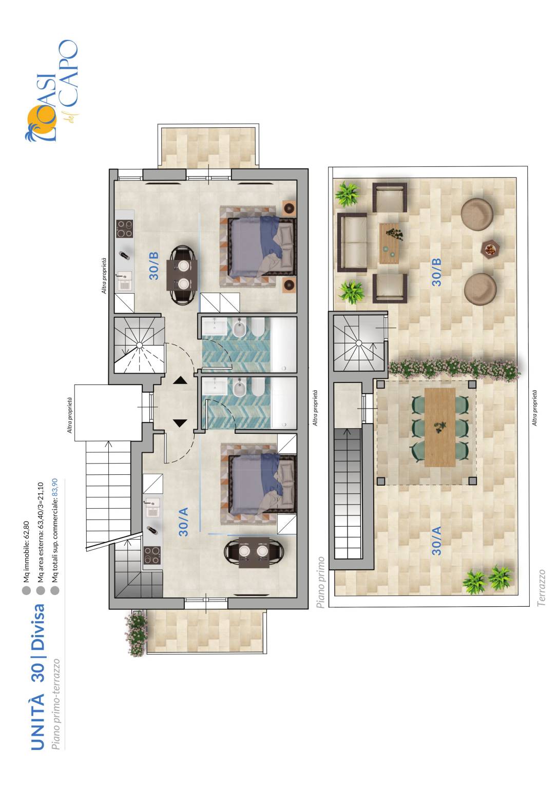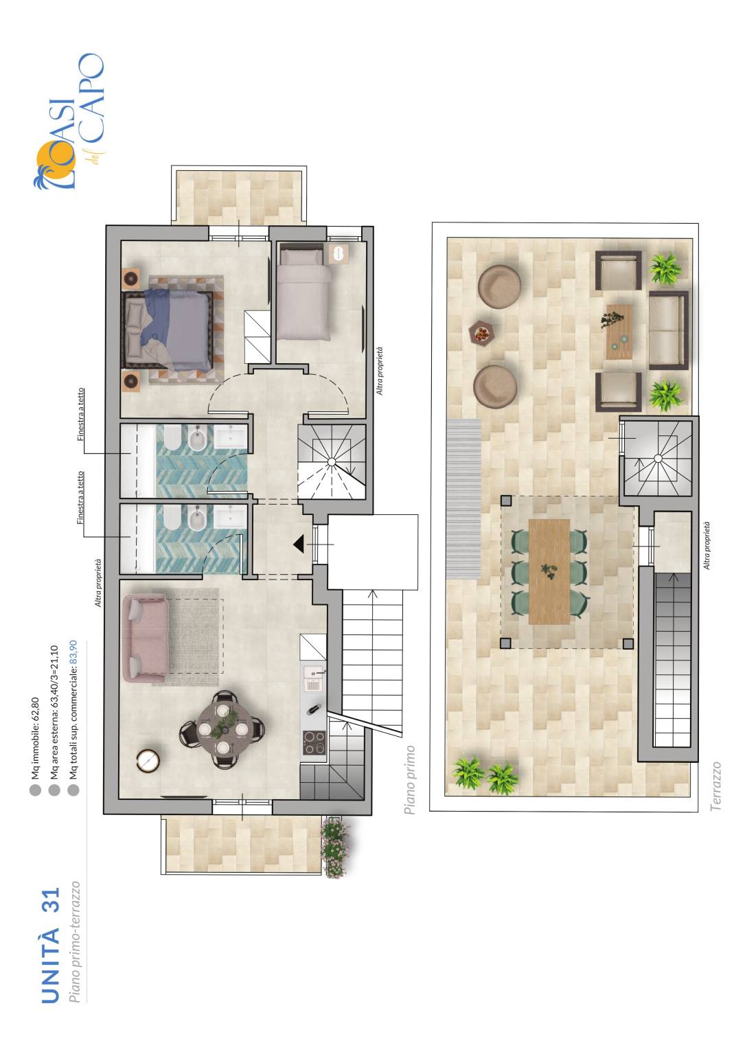 | Terrazza - 2° piano | 70 Mq | 21 Mqc |